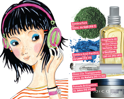 Sombras de tonalidades vibrantes, como laranjas e tons mais vivos de azul e do verde, são sua paixão. Mas, quando usá-las, cubra toda a pálpebra com a cor escolhida e esfume-a em direção à sobrancelha para dar leveza. Gloss transparente ou um batom cor de boca para os lábios completam o look sem pesá-lo.